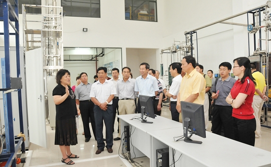 2009年6月17日下午,云南省教育考察團(tuán)在省教育廳副廳長殷翔文的陪同下來我校參觀考察。校長、黨委副書記陳志剛陪同客人參觀了我校石化工業(yè)中心。