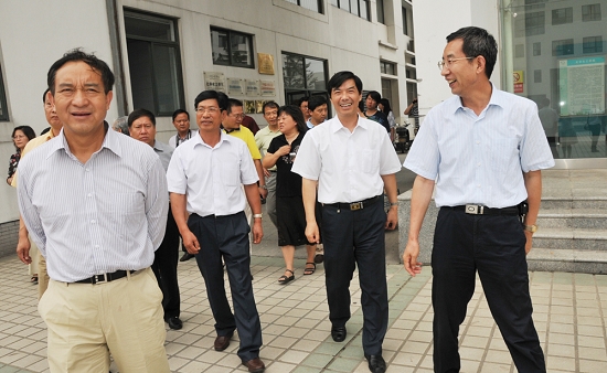 以云南省教育廳廳長羅崇敏(右三)為團(tuán)長的教育考察團(tuán)在省教育廳副廳長殷翔文(右一)的陪同下來我校參觀考察