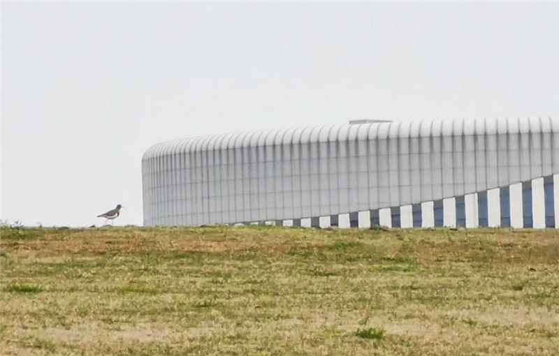 翩落在草坪中央的野鷺