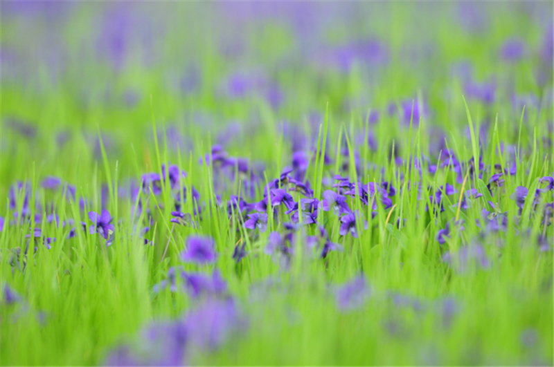 晨光輕撫盛開的二月蘭