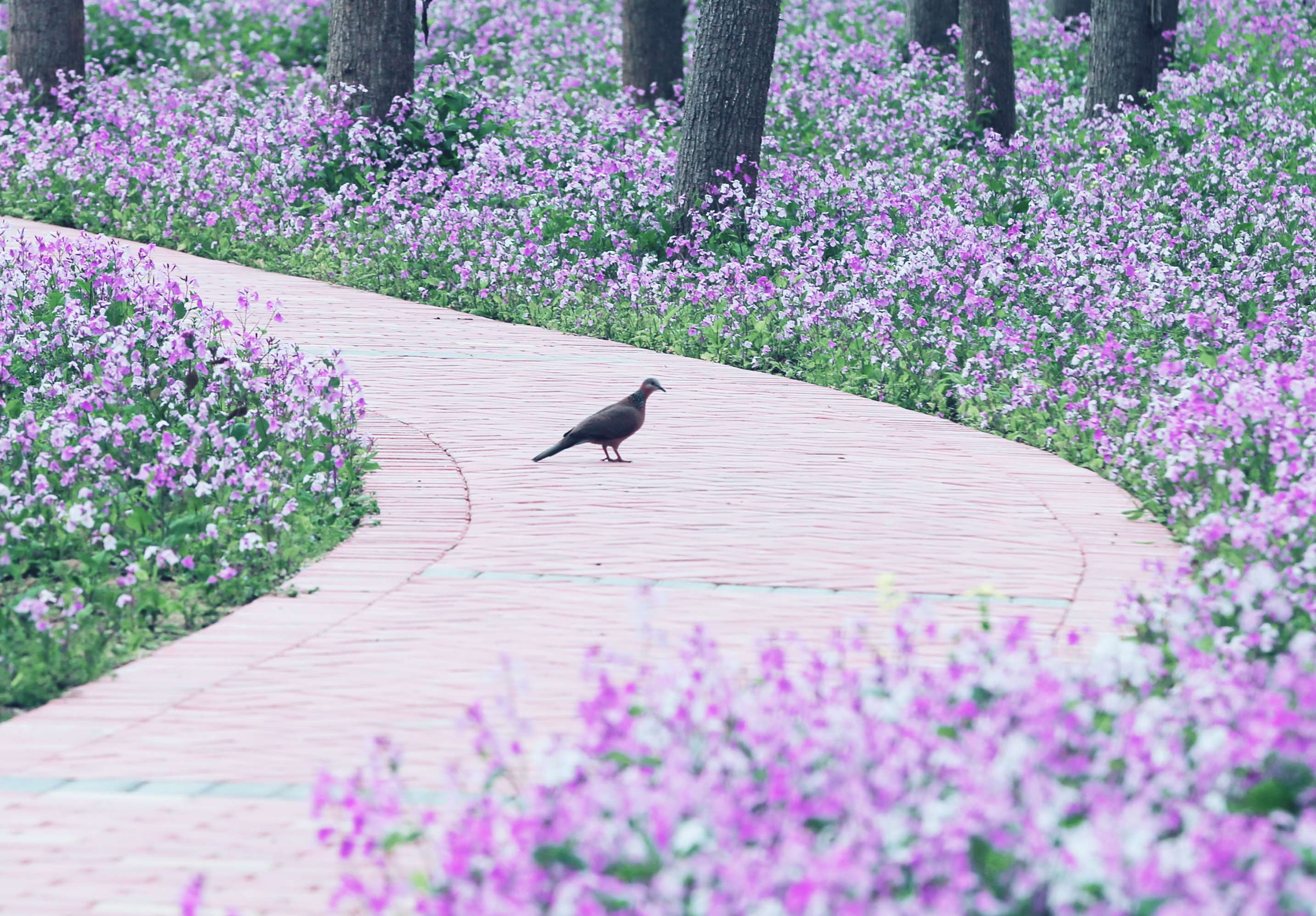 在春風的親吻下羞紅了臉頰,
