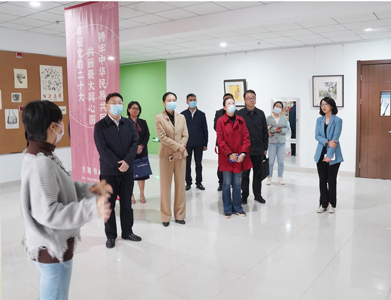 專家組一行實地察看了常州大學紅色文化主題教育館、紀俊玲教授“植物染料提取及其應用研究”工作室、黨盟共建學院——史良法學院、徐培晨美術館,參觀了“鑄牢中華民族共同體意識”教育主題書畫展,詳細了解了學校協同育人同心教育實踐基地的文化傳統、優勢特色和教育意義。