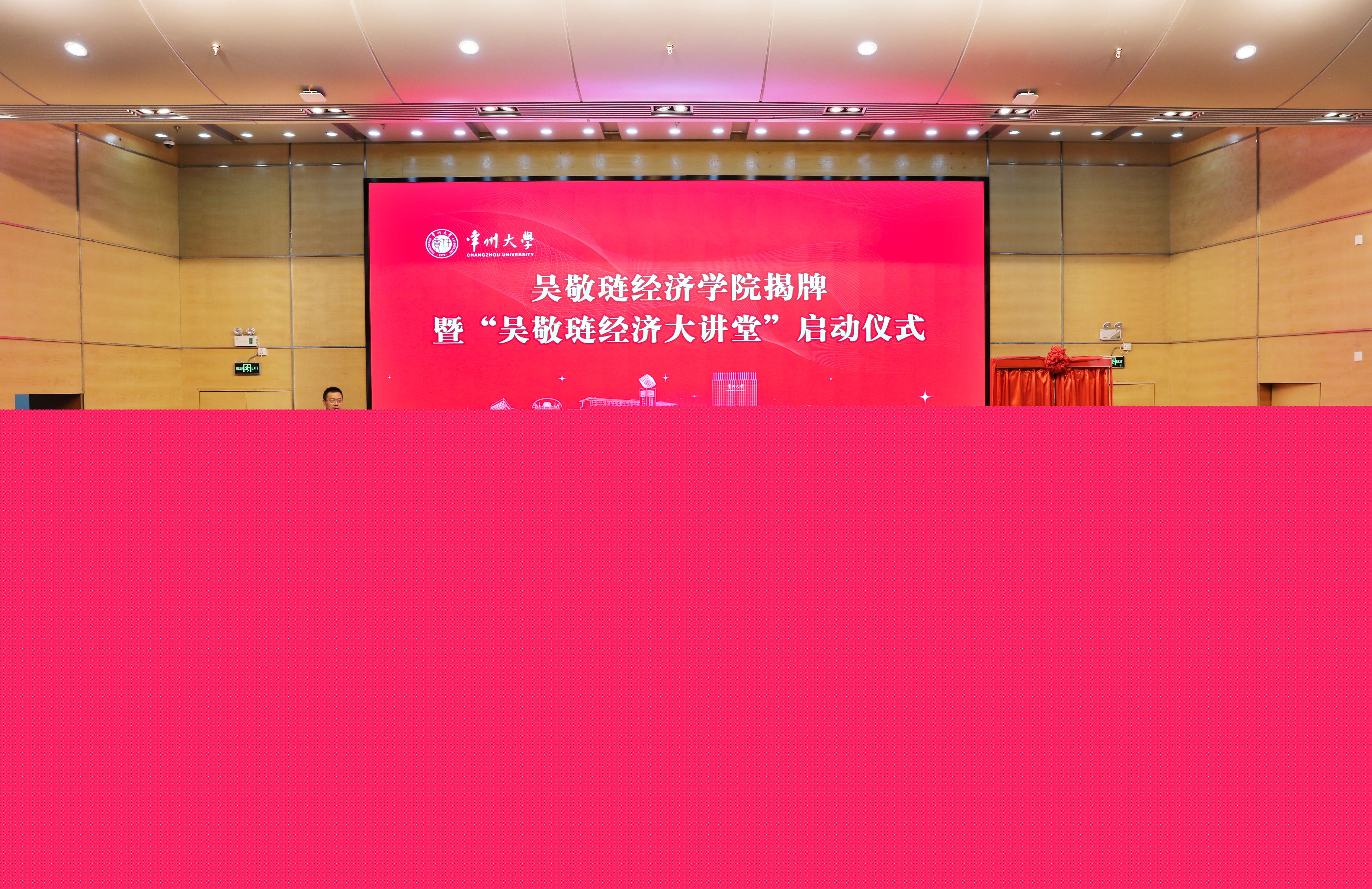 3月15日上午,常州大學吳敬璉經(jīng)濟學院揭牌暨“吳敬璉經(jīng)濟大講堂”啟動儀式在科教城校區(qū)文彰樓報告廳舉行。國家發(fā)改委宏觀經(jīng)濟研究院原副院長、中國人民大學發(fā)展與改革研究院常務副院長馬曉河,第七大道執(zhí)行董事兼CFO、無錫市上市公司協(xié)會副秘書長李正全,孫冶方基金會理事長顧問葛俊,中信出版集團《比較》雜志副主編吳素萍,常州市人大常委會委員、財政經(jīng)濟委員會副主任委員李亞雄,常州市政府研究室原主任盛祖祥,常州市現(xiàn)代企業(yè)發(fā)展研究會會長周俊,常州市現(xiàn)代企業(yè)發(fā)展研究會常務副會長、派德科技董事長盧文曉,常州匯塑勤業(yè)進出口有限公司總經(jīng)理陳祥應邀出席。我校黨委書記陳群,黨委副書記、校長徐守坤,黨委常委、副校長黃海燕,黨委常委、總會計師陸華良,黨委常委、宣傳部部長楊琳出席活動。學校相關職能部門負責人、文科學院負責人和教師、學生代表參加活動。陸華良主持活動。