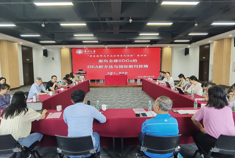 姜國剛介紹了學院和蘇臺經貿合作與科技創新研究中心的基本情況。邱永和作《面向全球SDGs的DEA新方法與國際期刊投稿》講座,并與學院教師生進行了互動交流。