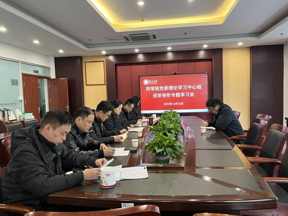 12月13日下午,黨委常委、副校長李亞飛巡學旁聽藥學院黨委理論學習中心組專題學習會。出席會議并全程督導,學院黨委理論學習中心組全體成員參加學習。院黨委書記王利群主持學習會。