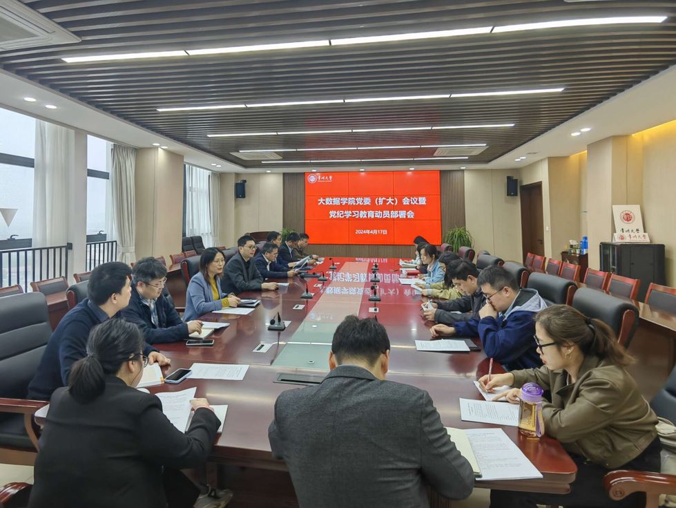 4月17日下午,計算機與人工智能學院 阿里云大數據學院在西太湖校區圖文信息樓818會議室召開黨委(擴大)會議暨黨紀學習教育動員部署會。學院領導班子、黨委委員、黨支部書記、黨員代表參加會議,黨委副書記李雪琪主持會議。