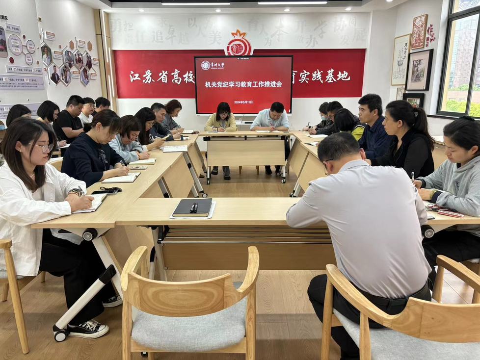 5月11日,機關黨委在科教城校區文正樓417會議室召開會議,就推進黨紀學習教育、進一步深化機關作風建設進行部署,機關各支部組織委員參加會議,機關黨委書記白澤樸主持會議。