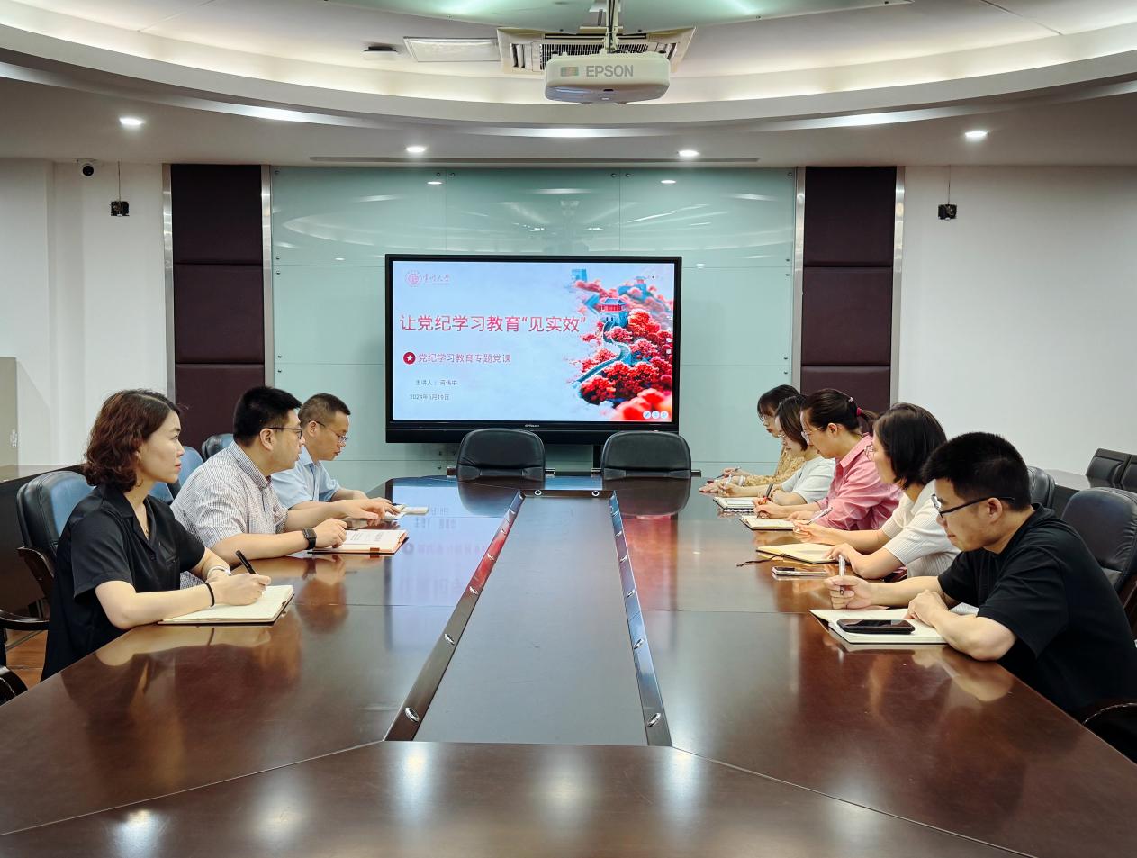 為進一步推進黨紀學習教育走深走實,強化支部黨員干部的紀律意識和規矩意識,6月19日上午,國采黨支部書記蔣偉中在科教城校區文正樓第一會議室為支部黨員講授專題黨課《讓黨紀學習教育“見實效”》。
