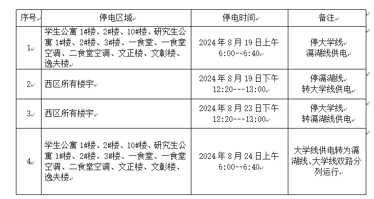 接供電公司通知,因供電公司工程建設,需要對35KV滆湖線、35KV大學線停電,涉及我校西區停電公告如下: