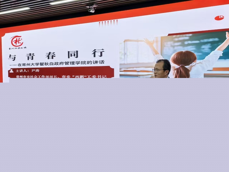 為貫徹落實(shí)中央社會工作會議精神,加強(qiáng)全市社會工作人才隊(duì)伍建設(shè),推動社會工作領(lǐng)域政策研究,11月20日,瞿秋白政府管理學(xué)院與常州市委社會工作部在西太湖校區(qū)白云樓4樓報(bào)告廳舉行合作共建活動。市委社會工作部部長、市委“兩新”工委書記尹濤,瞿秋白政府管理學(xué)院院長宋林飛,市委社會工作部副部長鐘芃出席活動,常州市金壇區(qū)委社會工作部副部長于水、武進(jìn)區(qū)委社會工作部副部長葛長青、天寧區(qū)委社會工作部副部長劉惠萍、鐘樓區(qū)委社會工作部副部長張鳴、經(jīng)開區(qū)政法工作部副部長金麗娟、常州市委社會工作部社工人才和志愿服務(wù)處科員袁莘慧、張琦,學(xué)院相關(guān)負(fù)責(zé)人和社會工作專業(yè)本科生、研究生240余名同學(xué)參加活動。學(xué)院黨總支書記潘道廣主持活動。