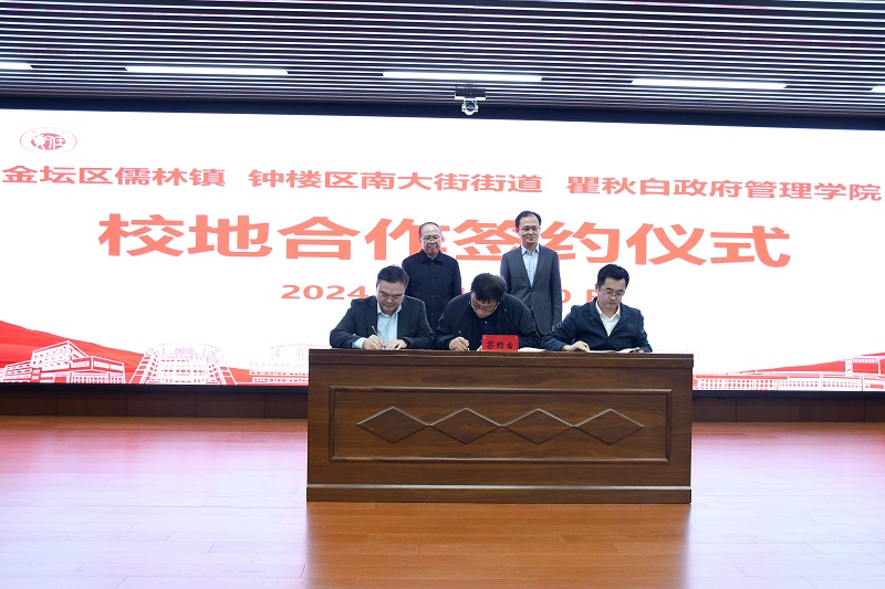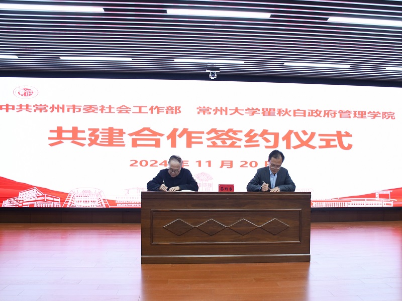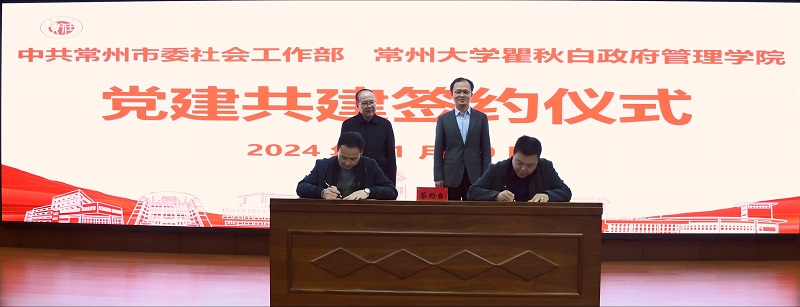 宋林飛與尹濤簽署了合作共建協(xié)議,雙方將圍繞黨建工作共促、師資課程共享、隊(duì)伍人才共育、課題報(bào)告共研、場景陣地共建等方面展開深入合作。學(xué)院相關(guān)負(fù)責(zé)人與中共常州市委社會工作部機(jī)關(guān)黨支部書記王劍鵬簽訂了黨建共建協(xié)議,與金壇區(qū)儒林鎮(zhèn)黨委副書記劉丹、鐘樓區(qū)南大街街道黨工委副書記潘振興簽訂了教學(xué)實(shí)踐基地協(xié)議。