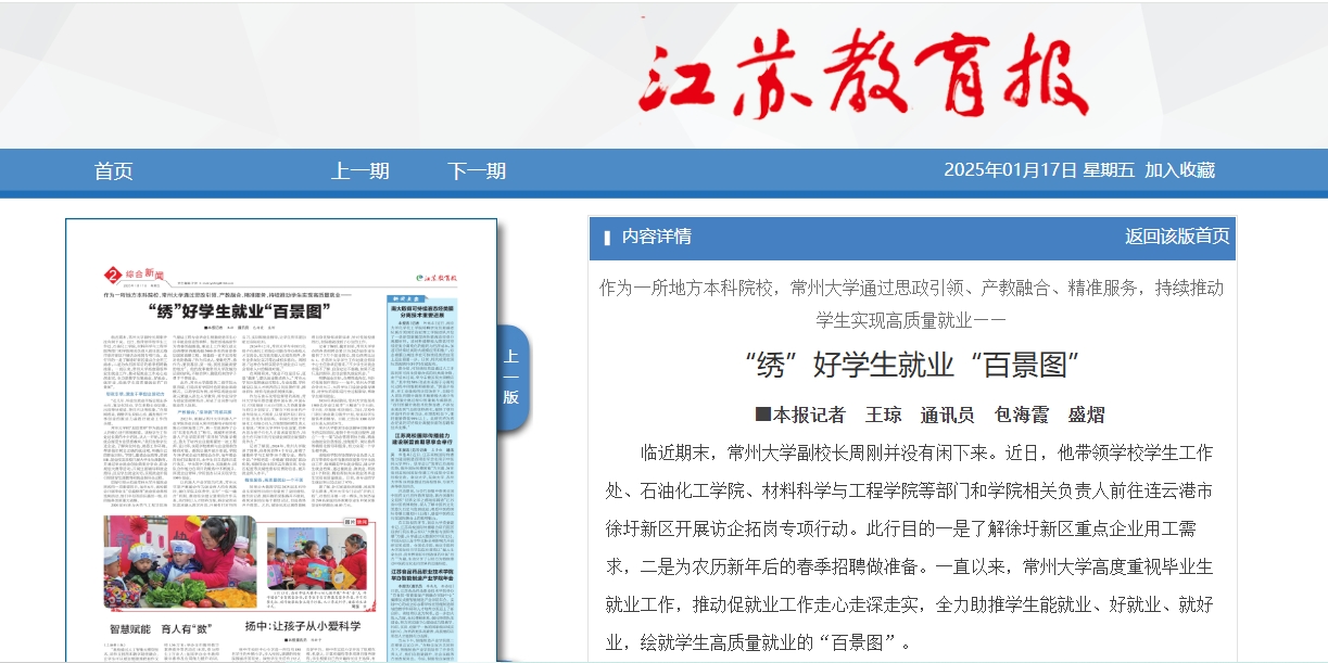 2024年12月,常州大學與中國石化揚子石油化工有限公司聯合舉辦高校人才交流會,雙方就關鍵人員雙向培養、多專業多崗位實習等達成初步意向。周剛說:“這種合作將實現學生就業出口與社會需求入口的精準對接。”