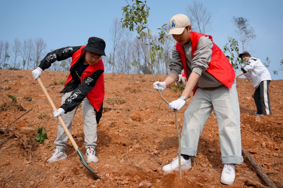 3月12日,在全國第47個植樹節到來之際,為深入學習貫徹習近平生態文明思想,積極踐行“綠水青山就是金山銀山”的綠色科學發展理念。海外教育學院中外大學生志愿者隊赴句容市磨盤山林場開展植樹節勞動教育實踐活動,希望中外友誼與和平像樹苗一樣茁壯成長,生生不息。
