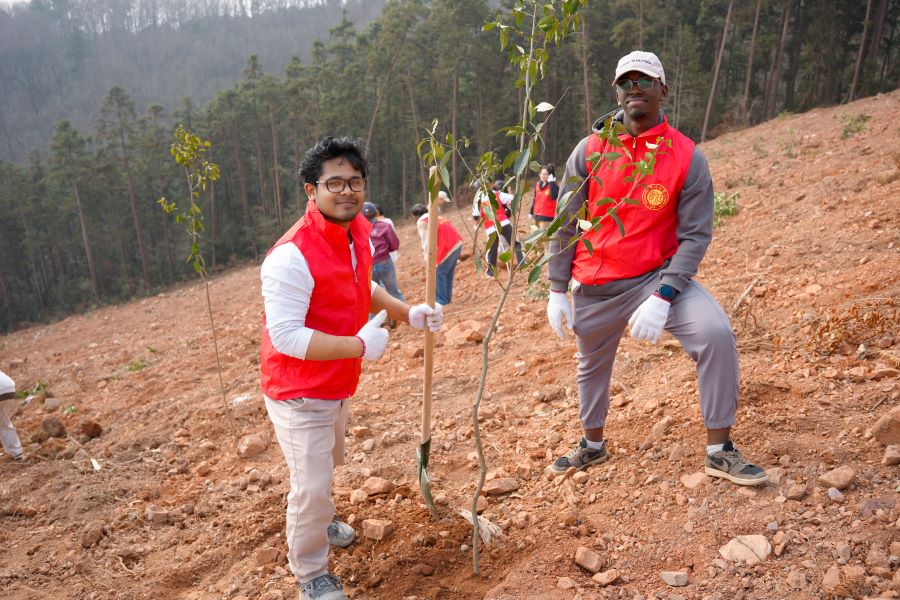 來自斯里蘭卡的云翔同學表示:“第一次在中國參加植樹活動,感覺非常棒。和大家一起種樹,讓我體會到保護環境是全世界共同的責任,我也會把這份經歷分享給家鄉的朋友們。”中愛242支靖遠同學在活動中也感觸頗深,她說:“這次植樹活動很有意義。雖然大家來自不同地方,但對環保的熱忱是共通的。通過這次活動,我交到了很多外國朋友,拓寬了自己的視野,以后也會更積極地參與這類活動。”