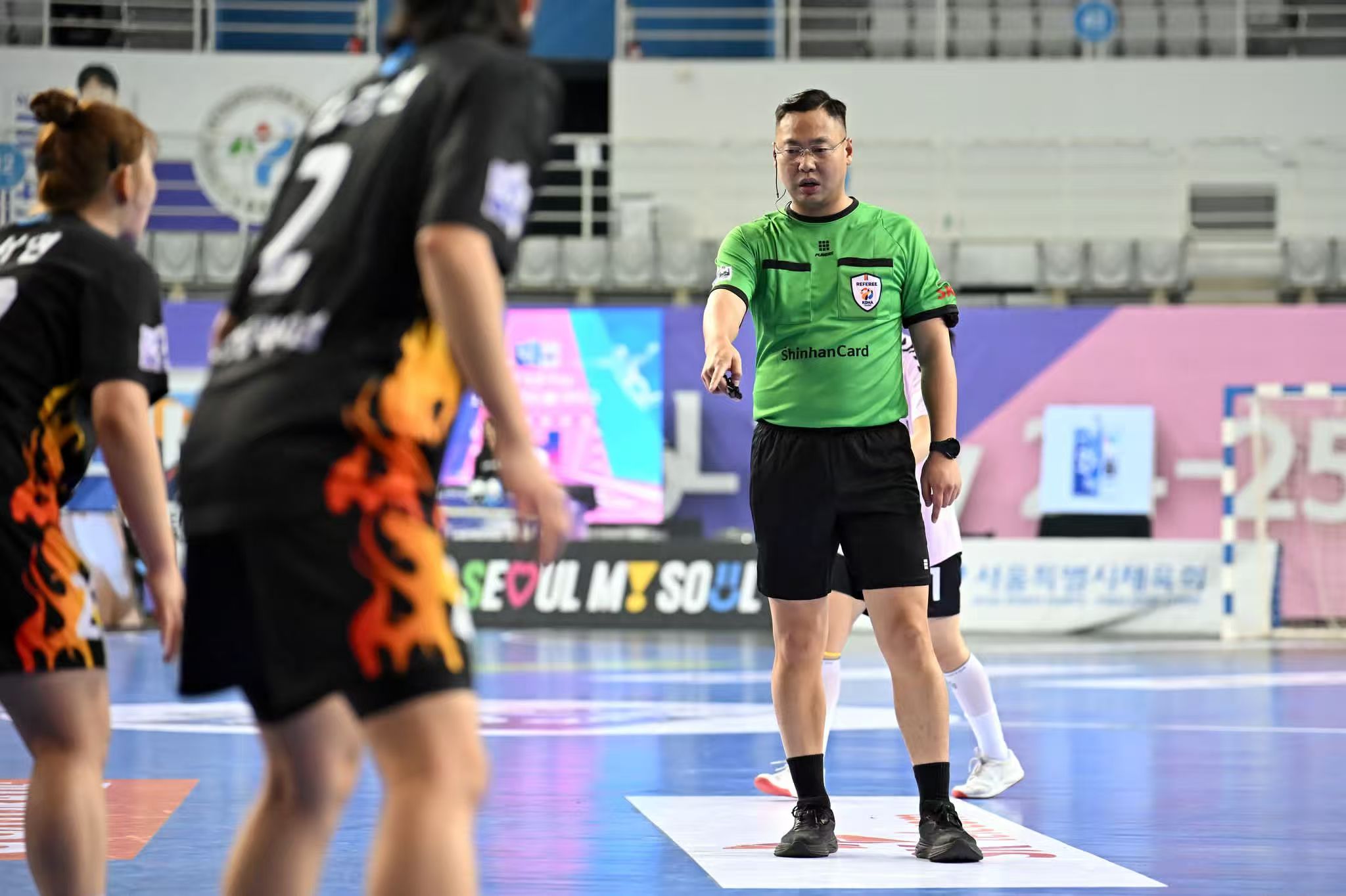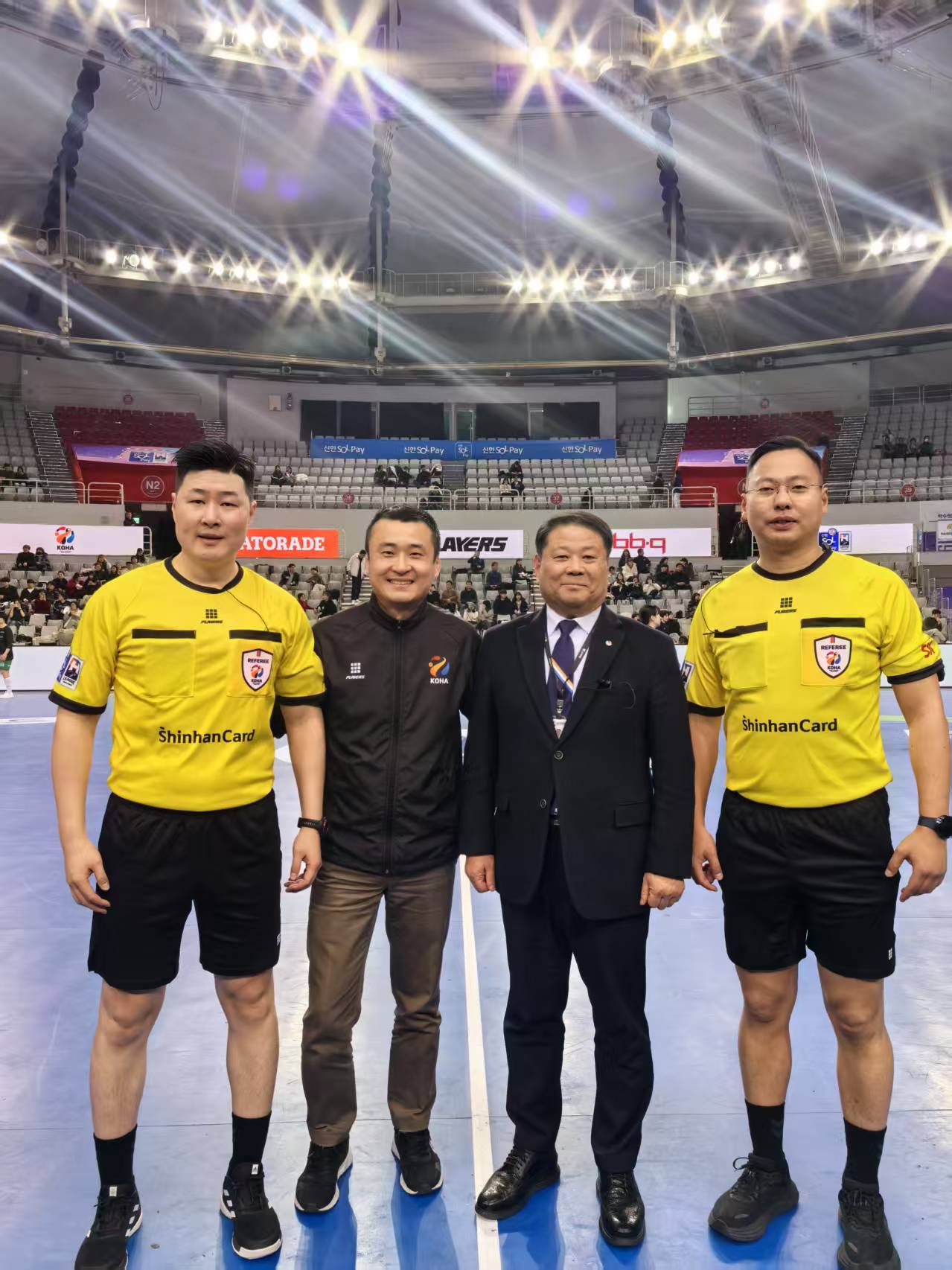 韓國手球聯賽是亞洲最高水平職業賽事之一,對裁判員的專業素養和臨場經驗要求極高。伍豪憑借其豐富的國際賽事執裁背景,以精準判罰、高效控場和跨文化溝通能力,圓滿完成了多場關鍵場次執裁工作。韓國手球協會評價其“展現了卓越的職業水準和中立裁判的公正態度”,為賽事公平性與觀賞性提供了有力保障。