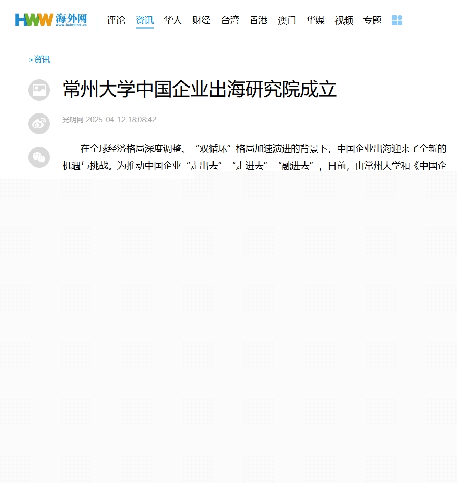 在全球經濟格局深度調整、“雙循環”格局加速演進的背景下,中國企業出海迎來了全新的機遇與挑戰。為推動中國企業“走出去”“走進去”“融進去”,日前,由常州大學和《中國企業報》集團共建的常州大學中國企業出海研究院正式成立,成為國內首個聚焦中國企業出海研究的高校研究機構。