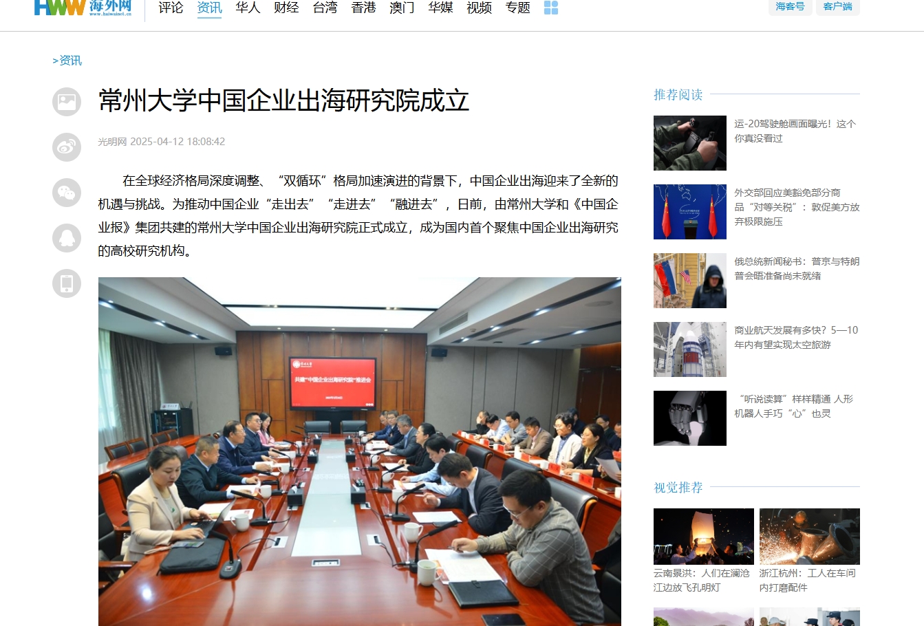 在全球經濟格局深度調整、“雙循環”格局加速演進的背景下,中國企業出海迎來了全新的機遇與挑戰。為推動中國企業“走出去”“走進去”“融進去”,日前,由常州大學和《中國企業報》集團共建的常州大學中國企業出海研究院正式成立,成為國內首個聚焦中國企業出海研究的高校研究機構。
