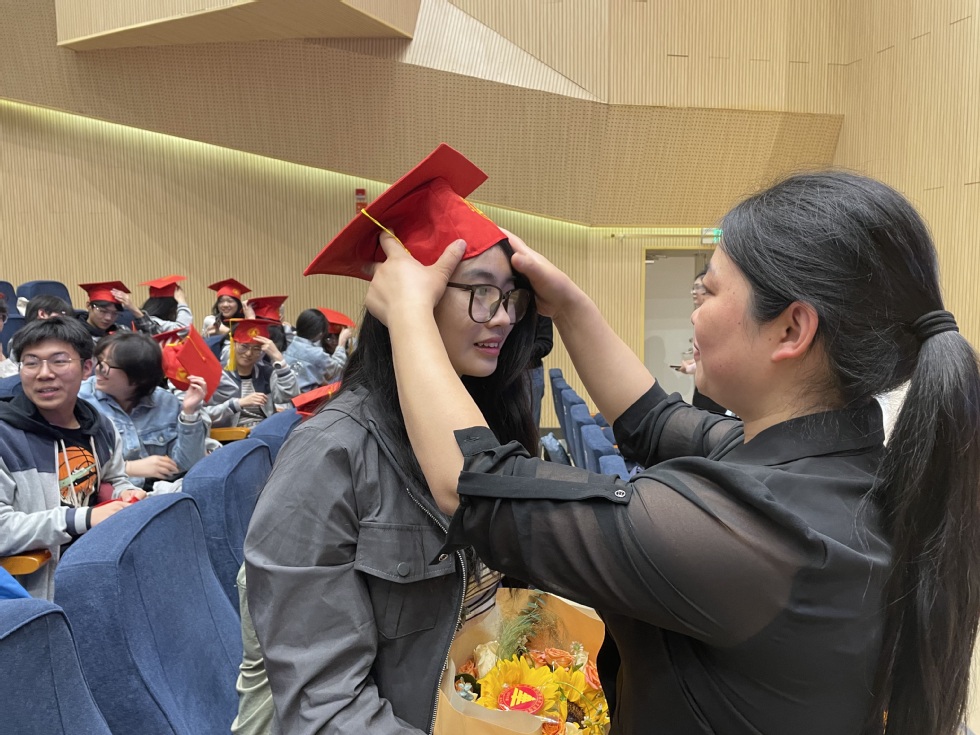 在溫馨的氛圍中,家長(zhǎng)代表們?yōu)橥瑢W(xué)們戴上成人禮帽、紀(jì)念胸章,并遞上飽含深情的家書(shū)。全體同學(xué)面向國(guó)旗,一聲聲莊嚴(yán)的成人宣誓、鏗鏘有力的誓言在禮堂內(nèi)回蕩,生動(dòng)詮釋了華高學(xué)子們勇?lián)?zé)任、報(bào)效祖國(guó)的堅(jiān)定決心。