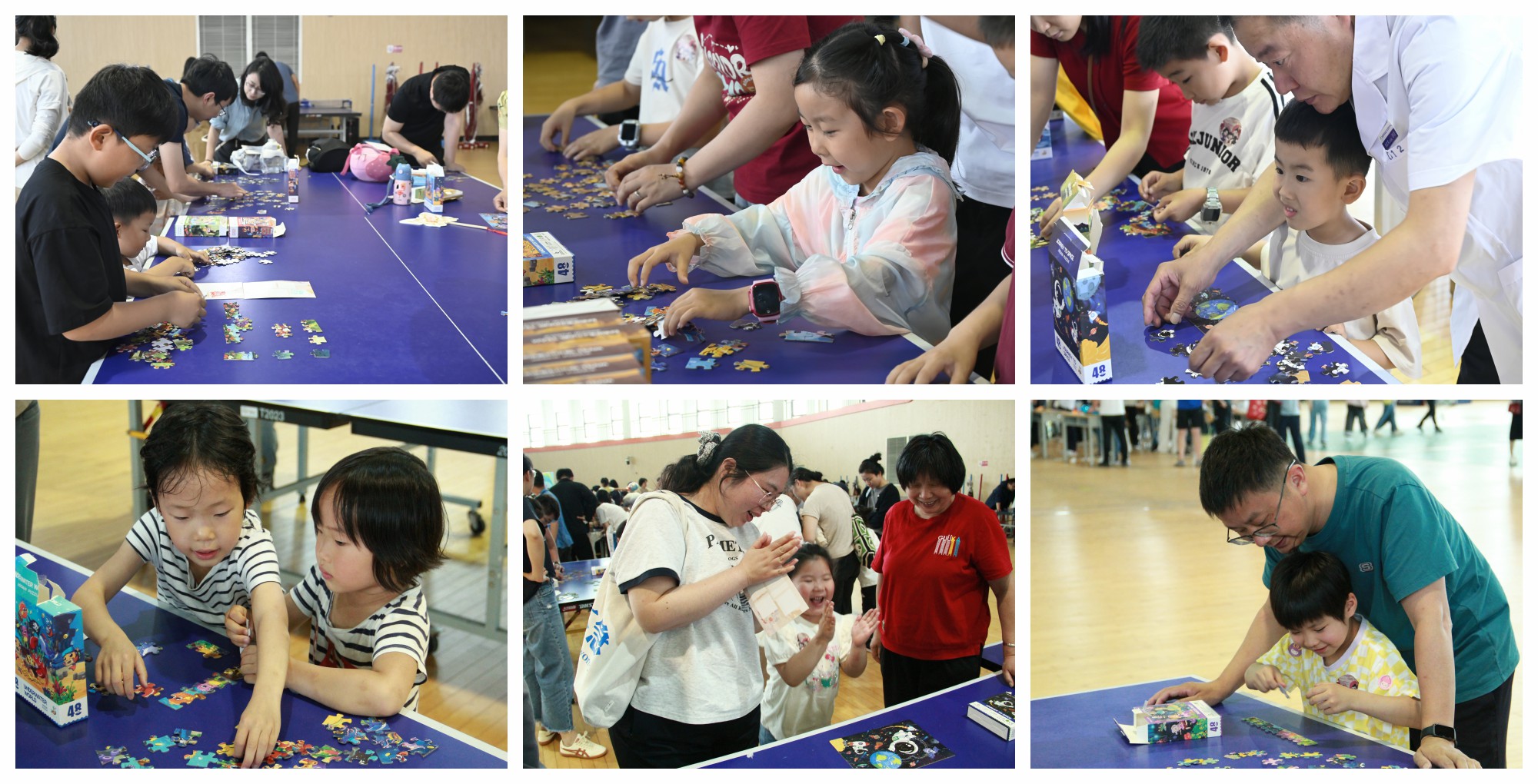 活動開場,由專業教練員帶領現場親子家庭進行了輕松愉快的熱身運動,為后續的趣味挑戰充分預熱。活動精心設置了5個集趣味性與挑戰性于一體的游戲項目——“套圈大冒險”游戲中,爸爸媽媽和孩子齊心協力,眼神專注地盯著造型酷炫的汽車模型、精致小巧的迷你書包、軟萌可愛的毛絨玩具和實用便攜的手持風扇等“獎品”,現場不時傳來套中獎品后的歡笑聲;“歡樂拼時光”游戲中,爸爸媽媽和小孩子集思廣益,充分發揮自己的觀察力和思維能力,一幅幅圖案在大家的共同努力下逐漸完整;“萌寶踢踢樂”游戲中,孩子化身為活力四射的足球小將,家長們則在一旁加油助威,為孩子進球歡呼喝彩;“愛的紀念冊”區域,爸爸媽媽和孩子們擺出各種各樣有趣有愛的姿勢,記錄下這溫馨美好的瞬間;“小小拓印師”拓印非遺文化體驗環節,在專業老師的指導下,爸爸媽媽和孩子分工合作,小心翼翼地進行著上紙、潤紙、刷紙、晾紙、拓墨等多項工序。隨著一道道工序的完成,一個個趣味橫生的圖案慢慢呈現在大家眼前。孩子們不僅體驗到了自己動手制作的樂趣,也深刻感受到了非遺文化的獨特魅力。